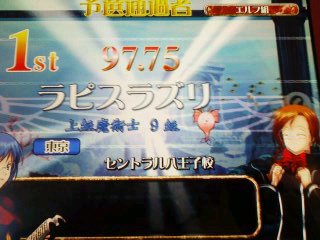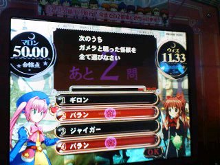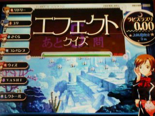 更に漢字間違ってるーw 前もって云います この記事は同じ日内でタイムスリップしまくりますんで要注意w 今度はウィズ主催のオフ会でつw 因みに場所は八王子 ウィズから受取った金は電車賃で消えますたw 参加者は 瑞奈、ウィズ、ろっきぃ、アシュレー、岳機(敬称略 まぁメインはこれですねw セントラルで店内対戦とはw(200円5クレ 因みにこの3人では200円分全て店内につぎ込むなどしてたりw 勝敗などは 私が2回、ウィズとろっきぃさんが1回ずつ 後1回? ……… …… … ハートマンが1回ですw いやぁグロ問の嵐だったよw(私もアニFでなくノンR5なんか出してたりw 時は少しさかのぼってw ちょっとウィズとオンラインしてたとき… キターッ! 1回戦スポ多、2回戦雑四文字と私を貶める為だけにあるようなジャンルに見舞われながらも何とか生き残り きましたよw まぁエルフですし? もちいただきw まぁ簡単な問題に一つグロ問(28%)程度なんで力の差は見せつけることはなかったですが(単独は1つ そしてウィズと共に決勝へw スプラッシュ杯かと思いきや… アクマリ杯w ウィズはスプラッシュだった模様(やっぱ優先度とかが関係するらしい その後色々ゲセンに回ったりw(八王子はゲーセンが多い アドアーズにてアルカナハートをやろうと思えば人がいたので少し様子見 初心者っぽかったのですがやりたいので乱入(ぉぃ 結果… スッゲー罪悪感に見回れましたorz だって空中受身すら取らないんだもん… そして時は飛んで数時間後のアドアーズにて めがっさ強いカムイが23連勝とかしてましたw(私が挑戦するときは28連勝中 やって見ましたが…強かった… アルカナブレイズが1発入ったのでよしとしますw 今日の戦績瑞奈リリカ風 VSリリカ風○ VSカムイ時● ちょっと戻ってQMA もうヒナギクを大窓に持ってくのは難しいと考えソラリス以外でのプレイを解禁 ってもいい成績は得られず… まぁ2級にはなりましたがね そしてウィズのを見てたらこんな問題が… チョット待てwなんかおかしくない? そしてウィズがユニに云ってるのでスタンドに入る 「ここはGW@レオン」キター 取り敢えずこの人は誰のサブなんか知ってる人情報もとむ(ぉぃ まぁアニF使いですからねぇ 決勝 もちろんアニFを使って着ましたねw(ウィズもこっちのスタンドにあわせてアニFでw 「末弥純」「隠の王」などグロ問の嵐w 前者はこっちがヒナギク動かしながらなんで頭動かず間違えるも 隠の王は正解w つか之は落さないw ってもこの問題も3人(ウィズ含む)正解してますしw 結果は3位(アニF刺さりまくった人がいたため) まぁ賢者とサブカ相手に之はよくやったさw 色々有って(ぉぃ)解散w 今日 アルカナハートをプレイ 久々にサキで云ってみる事に アルカナは風でw つかラスボス(名前忘れたーw)は強いなwと思うw まぁ勝てないわけではないのだが…油断して勝てない(結局勝てない 最後必殺でとどめ誘うとして防御に徹したら死亡→次も負けるというorz 一回くらいはクリアしたい… QMA4はどうやら24日で確定みたいですね 一部店舗によっては違うようですが(八王子PIAは2月入るかもしれないとのこと ヒナギクで 1回目は優勝 2回目は2オチ スポーツ嫌いっ!w というかさぁ・・・ スプラッシュ全て揃ってるってどーゆーことよっ! 青(生まれた)→紫→白→白蛇→赤蛇→白ヘビ→白→赤→白→赤(エンドレスw)→翠→白 いやエンドレスは突っ込みなしでw このばらつきは少しねぇ… アニFは取り敢えず正解率80こえてる程度(まぁほかも全てだが まぁ取り敢えず大窓に擦ればよし ネコアルクならぬネコプリムラ?w 返信>> ソラリスてんちょさん これを書く1週間前にはもう登録しちゃいましたねw(汗 QMA4稼動にあたって4台以上稼動店にはQMAオリジナルアミュパスが販売とのことですがソラリスさんも販売しますか?w っても稼動日学校だったりするのがネックorz どうかキーp(ry いえスルーしてください 大会ではNewみずなをお見せ…したいなぁ(ぇ 皆様へ MIXIは紹介かなんかが必要らしいので hayashi7@d6.dion.ne.jp までできればメールお願いしますm(__)m 手間ならスルーでw