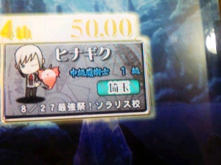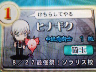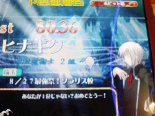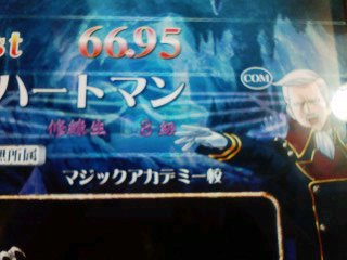 うち等の仲間内ので参加者は龍宮(クラスト)、ふーか(ウィズ)、ギロリン(ミララ)で よみさんとvasilさんとも会う事が出来ましたねw まぁ私のオフ会のときのお約束は 予想はシテルけどメールとかなんやらしないと確信持てないw ふーか達とも去年そうでしたしw まずは秋葉原S@Y 開店と同時に駆け込み四台とも占領して店内対戦 私の勝利ですw その後ふーかと龍宮がプレイして私はスタンドに プレイ中センモニに立つよみさんらしき人発見w 龍宮が「30日あの人いたよね」と云っていましたが確認もてずに とりあえずメールを待つ事に 数分後にメールが やはりよみさんでしたw龍宮以外と覚えがいいな… その後vasilさんが来て、サテが3つあいたので私たちで戦うことに 結果敗北ガブリエルにすらまけましたよ よみさんの芸タイは効きましたし、自分のアニゲエフェでまさかの自爆 ガブリエルの学問四択は略全部ダイブで6666w ダイブ率高いな…w その後↑の階にてGG 私のカイVSよみさんのロボカイ 敗北…無茶苦茶強いじゃないですかっ!よみさん! メルブラでもとてつもなく強かったですし 次はアニメイトここで龍宮は別行動 次はソフマップ ここでPCゲームを買うことにリベンジをしようと思い、ふーかに任せたはいいものの…ふーかですら拒否られた…orzリベンジならず その後パソの機械(よくわからない人)みたり、ガチャ見に行ったりで 紙風船に向かう 紙風船に行く前にこんなものを5人で飲みましたw ちゃんと飲みましたよw 味はソレナリに良かったです、大分甘党な物でw 紙風船にて再リベンジ!今度は龍宮に任せるw 500円高かったけど結果的に例のブツは手に入ったのでよしとしますw(1年間戦いつづけた甲斐があったw その後トラタワへ サテが2台増えてますねーw(サテ2台増大って書いてあったしw ヒナだとあまり勝ってませんが… ラッピーだと意外と勝つんですよね…(2クレしかやってません まぁ今回はよみさんとvasilさんのスタンドがありましたから勝てましたけどね この後マックにて食事して、よみさんとvasilさんとは解散 そんでもってゲマにて買い物(?)して私と龍宮も解散と ふーかとギロについては一応メイトやらどこやらに向かったみたいです(二人はたまにしかきませんし(ギロについては…ですからねぇ よみさん、vasilさん 今日はお疲れ様でした&いろんなところに連れまわして失礼しましたw まぁうち等ゎ中級クラスのォタなんでw 次回はQMAじゃなくて今日買ったPCゲームでもレビュるかな(ドンビキされそうw まぁここ一応18禁ゲーム取り上げてるんでw(さすがに人が見始めたからはあまりにヘヴィな内容は書きませんけどね