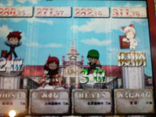 とりあえず詳細などなど 3/25 秋葉原にてオフ会開催 目的:ゲーセンでの交流(店内対戦)、及び秋葉原レジャーランドでのQMA大会 やるゲームはQMA(メイン)、GG、MB、アルカナなどに発展します レジャランの大会は13時受け付け14時開始で 定員32名(11日は24名しか参加してないらしいが) まぁ集合などはバラバラになるかもしれませんが 瑞奈は10時にゲーマーズ前にいると思います故 とりあえず参加デキルーとか参加してーwとかあればメールくだせぇ(相変らずですが掘り出してくださいw レジャランで(名前がはっきりしたら)急に超えかけるのもありですがねw QMA大会は参加者全員出るわけでゎないですけどねw(メアとかみへとか其処らへんは出ない性質の人 返信>> よみさん やっぱっすか