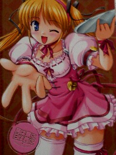 因みに題名見れば解るとおり「けよりな」からきてますw アニメはあまりに酷いからねぇ… キャベツですw 絶対見えない…良くてメロン(二枚目)… 雑誌(なんだったかは忘れた)に謝罪文書くほど酷いアニメってのも珍しいですね… 原作とアニメ見比べればわかりますが… キャラの設定が変…キャラ多すぎ… 仁君の給料の計算がおかしいっ!(ぇ アニメは酷いですが原作はとてもいいですw 良ければお手にw 明日は大会です QMA3最後ですw 最後くらい光を…浴びれるわけないかw さて…mura君とシキさんよりバトンが回ってますので書き込みw ケータイ(携帯電話)バトンから(因みに全て打ち込みしなくてゎならない事情ww ・今使ってる携帯はどこの会社?機種は? A,auのw42k ・毎月の携帯電話代はいくら? A,あんま数えないな…基本料金+4200円+1260円が基本w ・アドレス帳の一番目に入ってる人はどんな関係? A,中学時代の親友、明日(大会行く前に)久々にあうよw ・待ち受け画面は何? A, こんなんですwはにはにのまつりんwもう携帯の待ち受けの90%(期間)はこれですw ・着信音はどういう音? A,この前発表した自分の着ボイスw「君にもメールをくれる人がいたんだね、以外だなぁ」ってやつw 自称ツンデレには欠かせませんw ・携帯メールは1日何通出す?何通くらいもらう? A,こっちからすることはあまりないかな たまに100通くらい同じ人とエンドレスでやりつづけることが多い ・もらったメールの返事は必ず返す?どのタイミングでメールを返事する? A,返すのは半分以下かなぁw 食いつくようなネタやリア友じゃない人(ネット付き合いの人)は9割型返しますwいやいやメアド教えた人意外はw(厨房とかがたまに教えろ教えろしつこいので登録して3秒で消すw ・携帯電話の使い方、電話、メール以外にどういう機能使ってる? A,PCビューアがついてるのでそれ使ってイェッフーしてますw まぁケータイサイトに入れないことが多くてしゃろーん QMAの問題回収用に写メも多用w ・バッテリーが残り1になったら不安になる?そのときどうする? A,シカトして使いつづけるw 命に関わるような事なら考えるけどねぇ… まぁバンバン使ってGPS使えずに道に迷ったことあるけどねw ・非通知や登録してない番号からの電話ってでる? A,あ~これは前にドッキリくらった時を思い出すゎw 基本シカトつか電話自体基本シカト、非通知はかからないようになってるよン ・ストラップってどんなやつ? A,ラピスラズリの勾玉、アメジストの飾り、アクアマリンがついてる指輪とロザリオをつけてますw 好きなものでw ・携帯電話を家に忘れてきたときはどんな気分? A,しゃろーん この一言に尽きますw 授業サボれないしw(ケータイ弄って授業聞かずw(おかげで成績がクソ悪い ・仲の良い友達に電話したいから携帯貸して?って言われたらどうする? A,かけられる人によるw ・恋人に見られたら困るメールとかってある? A,恋人?それうまいあるか? ・恋人の携帯の中身見たいと思う?そっと見たことある? A,だから恋人ってうまいあるか? まぁいたとしても見る気はないねぇ…浮気は文化だしw 好き勝手してくださいって感じかな まぁまず作ることがないのでw ・メールで「す」の字を打つとどういう予測変換される? A,「全て」「翠」がでますねぇw まぁ此の頃多用したのがこの言葉ですから ・メールしたいときってどんな気分の時?(用事があるという答えは無しで) A,自慢したいとき?w後はQMAの大会の実況中継とか一時期してたかなw まぁ相手にしてみたらかなり迷惑だったと思うw ・恋人と別れたら相手のアドレス消す? A,まぁ学生時代だったらその学校に滞在してる間くらいは残しておく オンナノコのアドレスってあまり残したくないからね…(中学時代のは全て消してる ・ふと携帯を見ると「着信あり一件」見るとた別れた元恋人。どうする? A,シカトしますw電話にはでんわ~wオソマツ ・回したい人 A,よみさん、シキさん、烈火さん、哲雄さん、zanaさん、ちゅんさん、ソラリスてんちょさん、MAITOさん、やなせなちさん、vasilさん、瑞奈様の奴隷(マテウスさん、ろっきぃさん、ウィズ 見ててかつブログがあればやってみてくださいw 名前に野ってなくてももってってかまいませんよw 次はシキさんのデクストップバトン 【1】あなたのデスクトップを晒して、一言どうぞ。 …オヤジのです…ってわけで急遽変更(ぇ 青いですw まぁオーガストファンですからw 【2】OSは何? 98ですねぇ…そろそろ変えたい… 【3】これはあなた個人のパソコン? 職場や家族共有のパソコン? 家族きょーゆー 使用率は私が高いですw 【4】この壁紙は何? どこで手に入れた? さっきいったとおりオーガストのやつです 元ネタはぷりぽんの役CGw 脳みそホエホエ氏の絵がかぁ~いいですw 去年の冬コミで手に入れましたw 【5】壁紙は頻繁に変える? 変えても1枚目のやつに戻されてしまうのであまり頻繁にはw 【6】デスクトップのアイコンの数はいくつ? 48個w 私が使うのはゲームとネット回線を繋ぐときくらいの2つですねぇ… 後はマイコン 【7】ファ